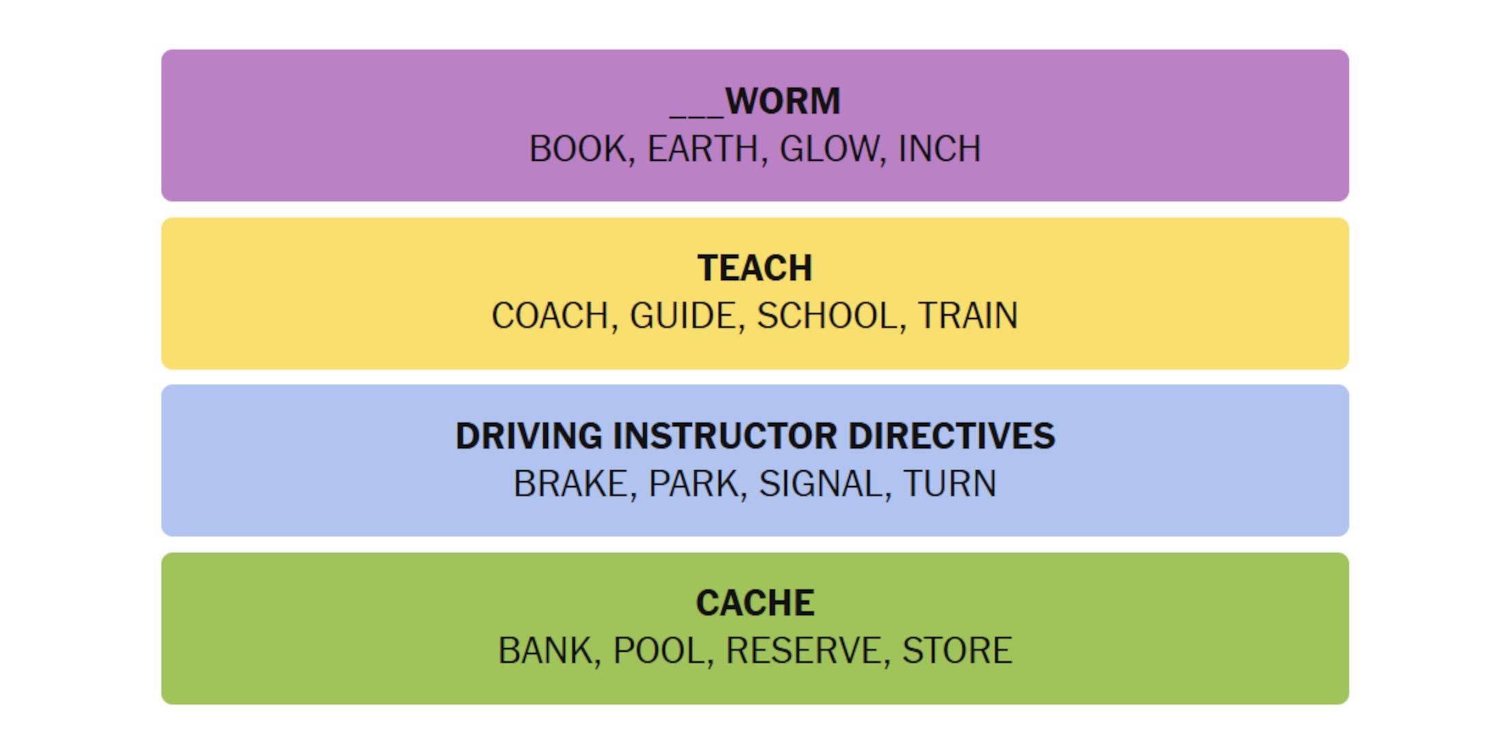 - Eliminate possibilities: Rule out categories that don't fit any of the words.