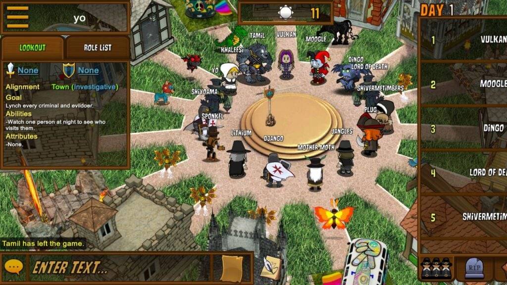 Townsfolk(間諜,治安官,醫生等)必須暴露威脅,而黑手黨成員,連環殺手和狼人試圖逃避檢測,並謀殺。期望純pandemonium - 非常適合大型群體。